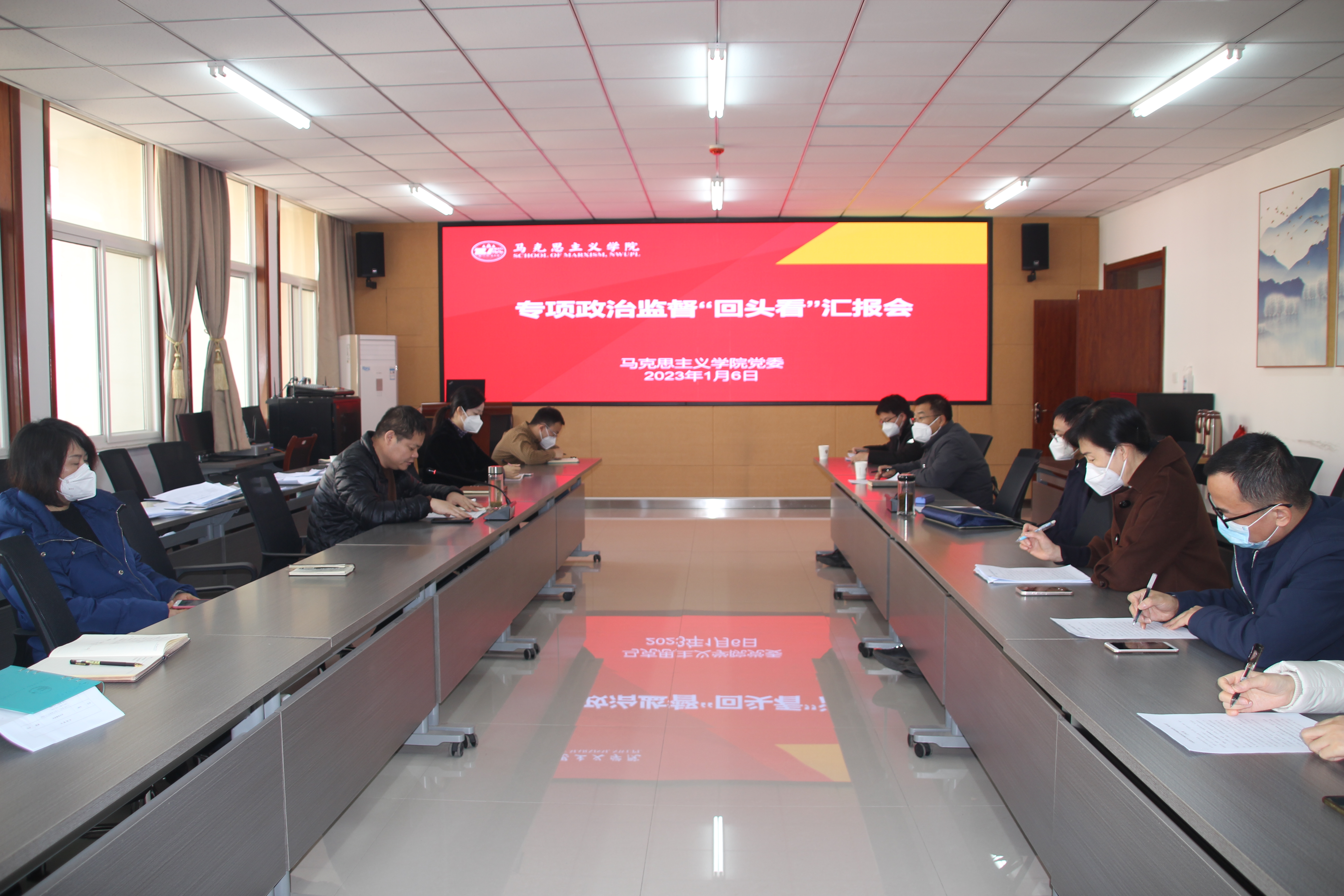 1月6日上午10:30分,日本三级片 在会议室召开专项政治监督“回头看”工作汇报会。校专项政治监督“回头看”工作组组长康鹏、督导组成员马玲、严芳、周兵、李辉莅临学院指导,校党委副书记、纪委书记、监察专员肖道远出席会议。会议由学院党委书记刘驰主持。