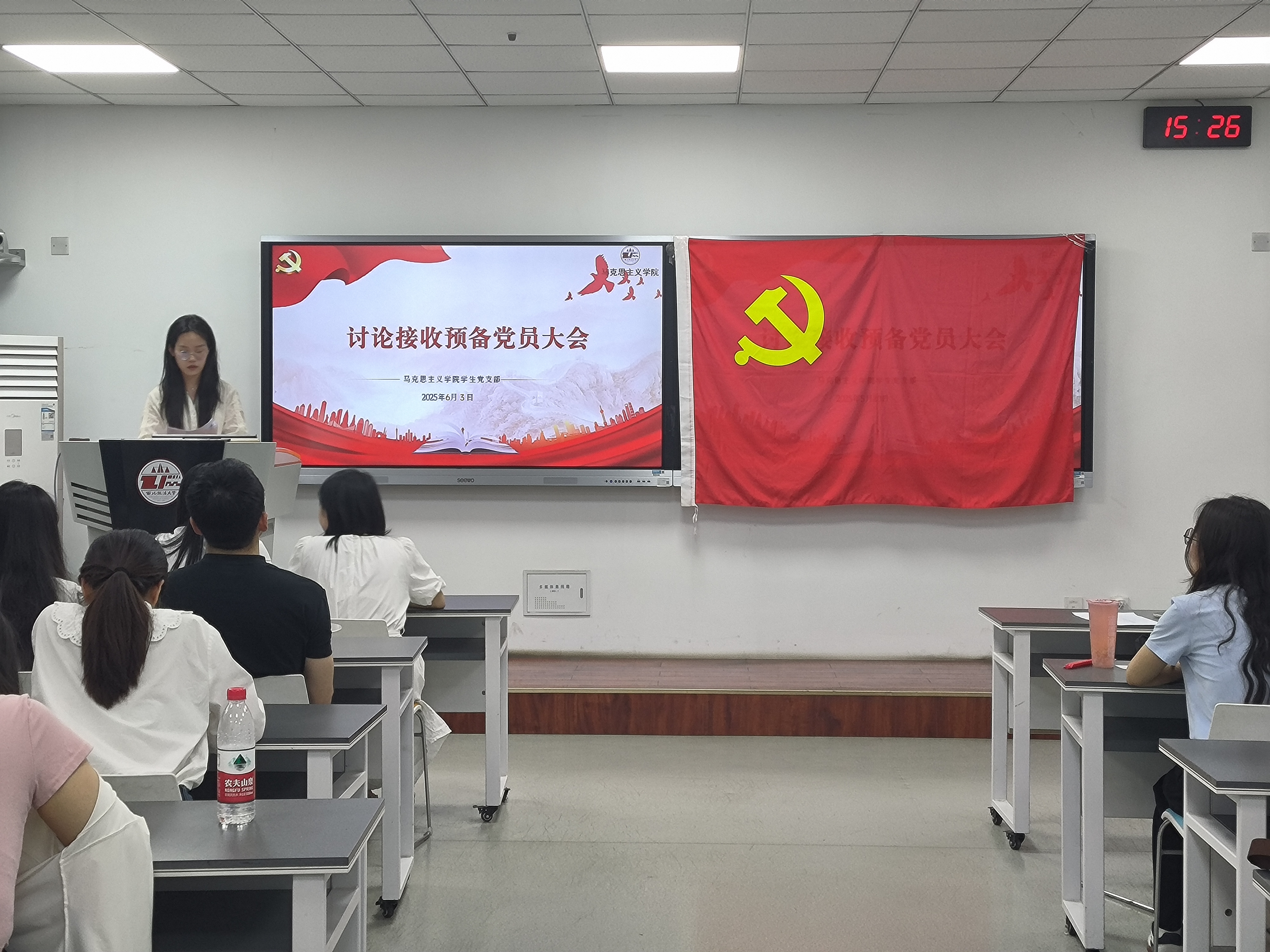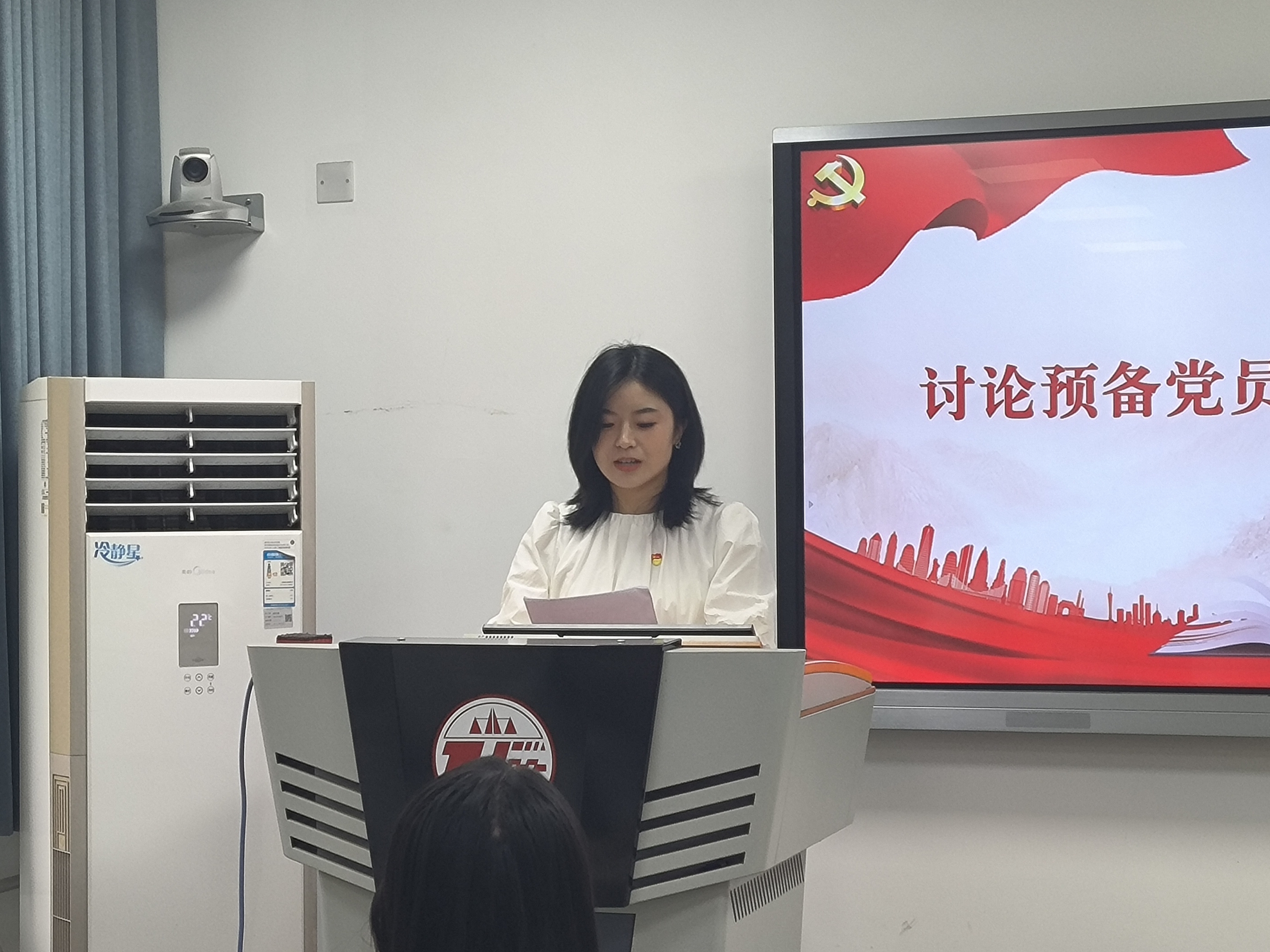 大会第二项议程,讨论接收杜佳欣等五名同志成为中共预备党员相关事宜。首先,侯佳月、杜佳欣、赵洁、李燚之、姜飞五名同志依次汇报了自己对党的认识、入党动机、个人履历、家庭和主要社会关系情况以及需向党组织说明的问题。接着,入党介绍人介绍了每位发展对象在培养考察期间的表现情况,任晓琴同志代表支部委员会报告了对杜佳欣等五名发展对象的支部考察意见,与会党员对杜佳欣等五名发展对象能否入党进行了充分讨论。经支部大会无记名投票表决,同意接收杜佳欣等五名同志为中共预备党员。