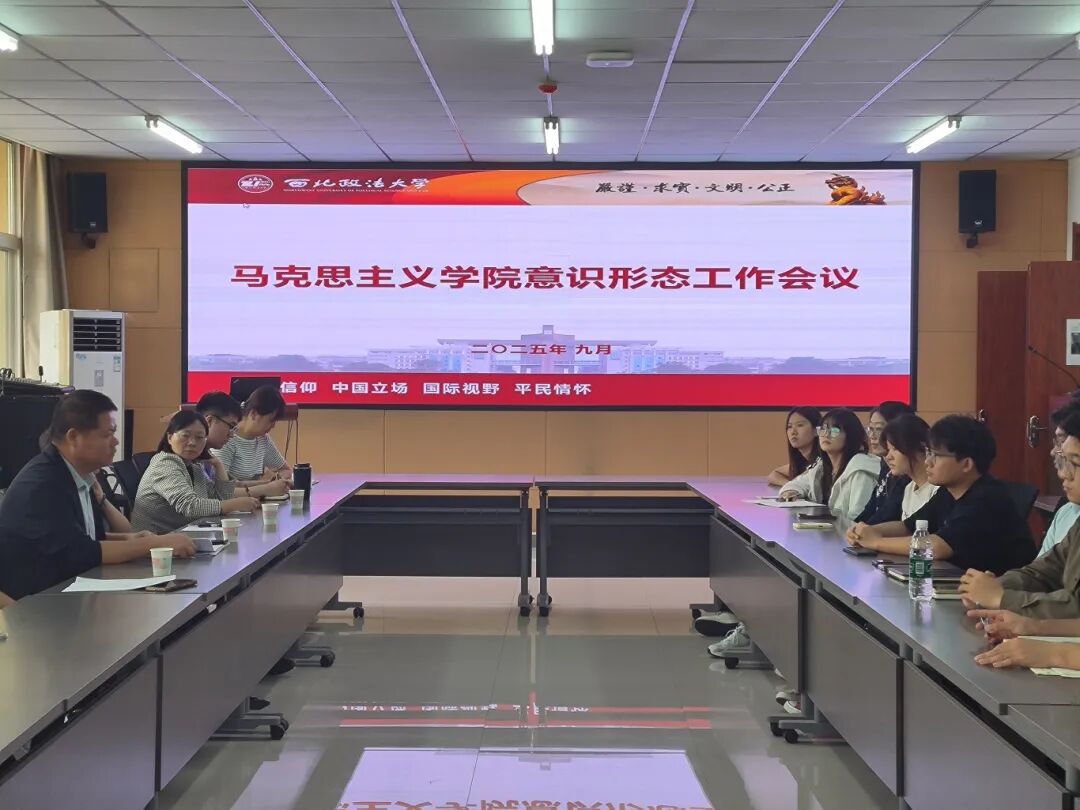 会议深入学习习近平总书记关于意识形态和宣传思想文化工作的重要论述,学习习近平总书记在纪念中国人民抗日战争暨世界反法西斯战争胜利80周年大会上的讲话精神,传达学习中共中央办公厅印发《纪检监察机关开展政治监督工作办法(试行)》文件精神,学习校党委《关于进一步提高党组织理论学习中心组学习质量的实施意见》以及意识形态工作等文件精神,总结意识形态方面前期工作,分析研判当前意识形态领域形势,安排部署学院下一阶段重点工作。