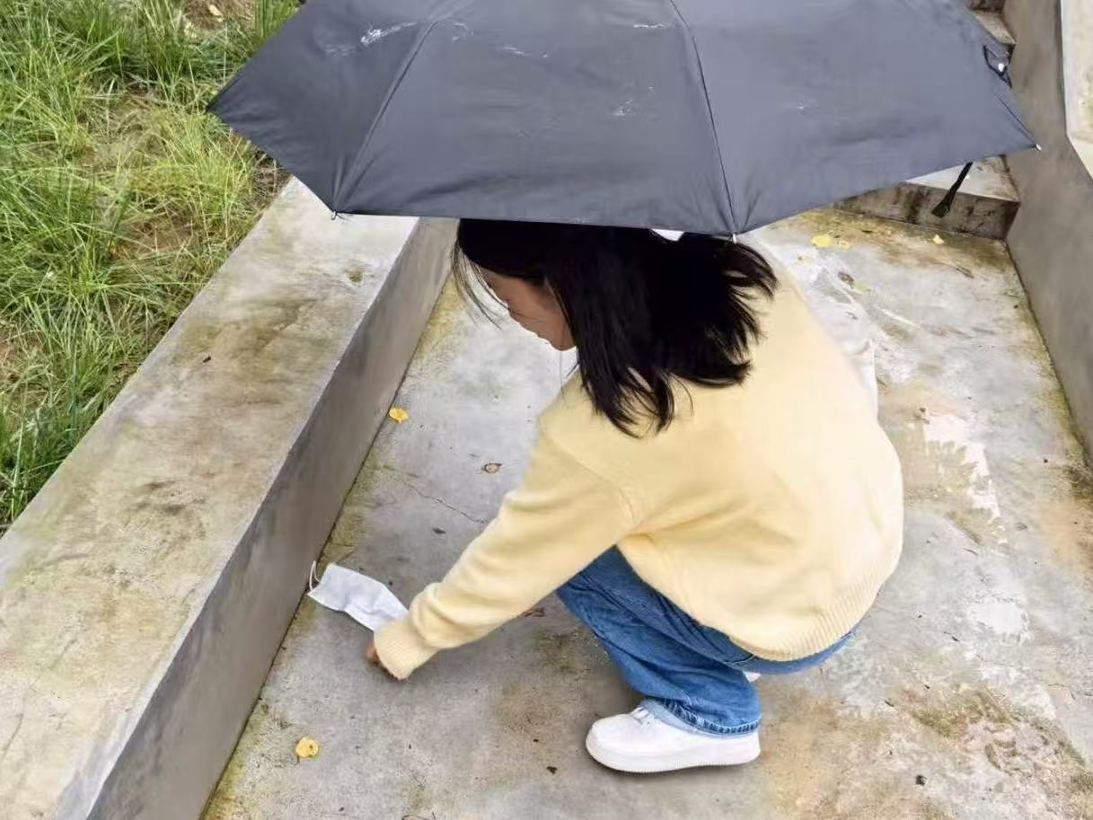 尽管秋雨绵绵,但参与活动的同学们热情不减。在劳动现场,同学们分工明确、配合默契,对责任区域进行了全面细致的清理。在校园里洒下了自己的汗水,成为了一道靓丽的风景线。