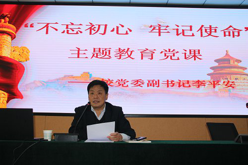 10月25日下午,根据学校“不忘初心、牢记使命”主题教育安排,校党委副书记李平安讲读主题教育专题党课,机关党委、部分马院师生党员参加活动。