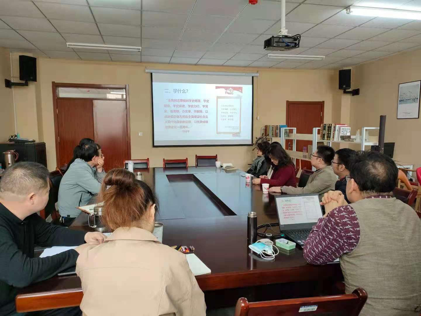 党总支理论学习中心组(扩大)在长安校区诚意楼五楼会议室组织集体学习。学院领导、党总支委员、党支部书记、教研室主任和科级干部参加了会议。会议由学校党总支副书记、院长魏奇主持。