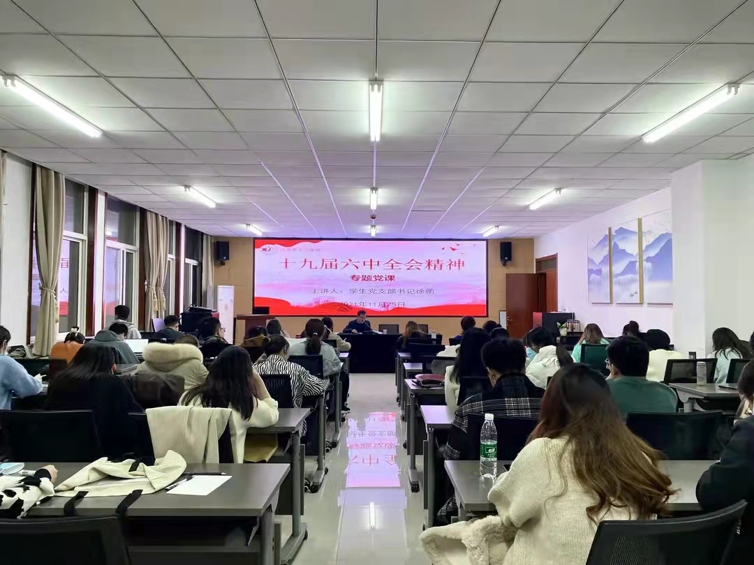 学生党支部书记徐鹏在长安校区诚意楼五楼会议室组织召开“学习党的十九届六中全会精神”专题党课,学院全体学生党员、发展对象以及部分入党积极分子参加了党课学习。