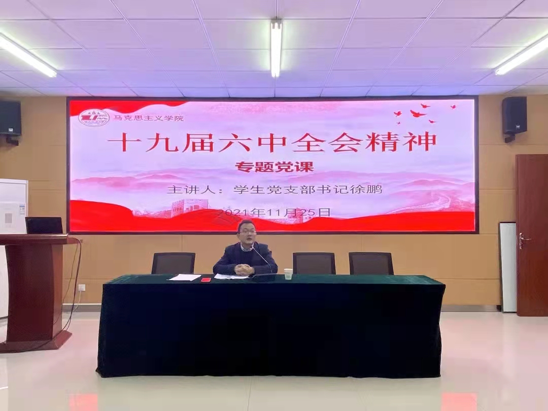 徐鹏在授课中详细阐述了党的十九届六中全会的重要意义,强调要完整准确、全面系统地学习党的十九届六中全会成果,包括中国共产党第十九届中央委员会第六次全体会议公报、习近平关于《中共中央关于党的百年奋斗重大成就和历史经验的决议》的说明、《中共中央关于党的百年奋斗重大成就和历史经验的决议》和中共中央的新闻发布会,坚持学原文、悟思想,深刻把握党的十九届六中全会的精神实质和核心要义。此外,徐鹏老师还表示,学生党员要以学习贯彻全会精神为契机,深入研究党带领人民进行革命、建设和改革的百年历程,立足上半年开展的党史学习教育基础,从中国共产党百年奋斗历史经验中汲取智慧力量,学会结合学科专业特点把握十九届六中全会的精神要点及其内在逻辑,以夯实专业基础,潜心学术研究。