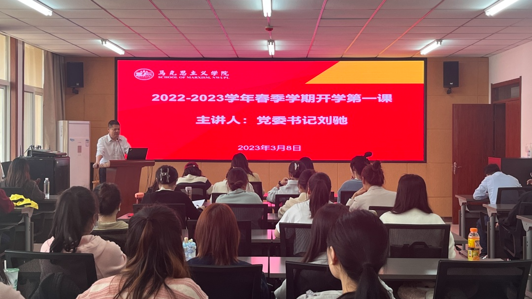 3月8日下午,日本三级片 在长安校区诚意楼五层会议室举行了“开学第一课”活动,学院党委书记刘驰主讲了2022-2023学年春季学期开学第一课。学生党支部书记徐鹏以及2021级、2022级全体研究生参与了学习。