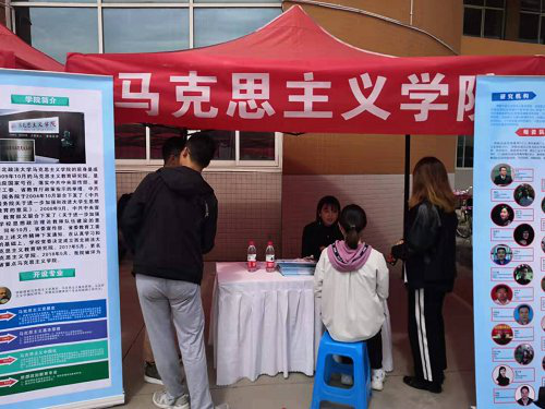 相关老师,如:李云老师、张红波老师等的推荐下萌生兴趣,有的是基于自身对思政学科的热爱,更有些是对于社会热点的关注使得其期待更进一步的学习相关理论知识。在学院学长学姐的耐心解释、悉心讲解下,来咨询的同学更进一步加强了对学院专业课的理解以及报考的兴趣。