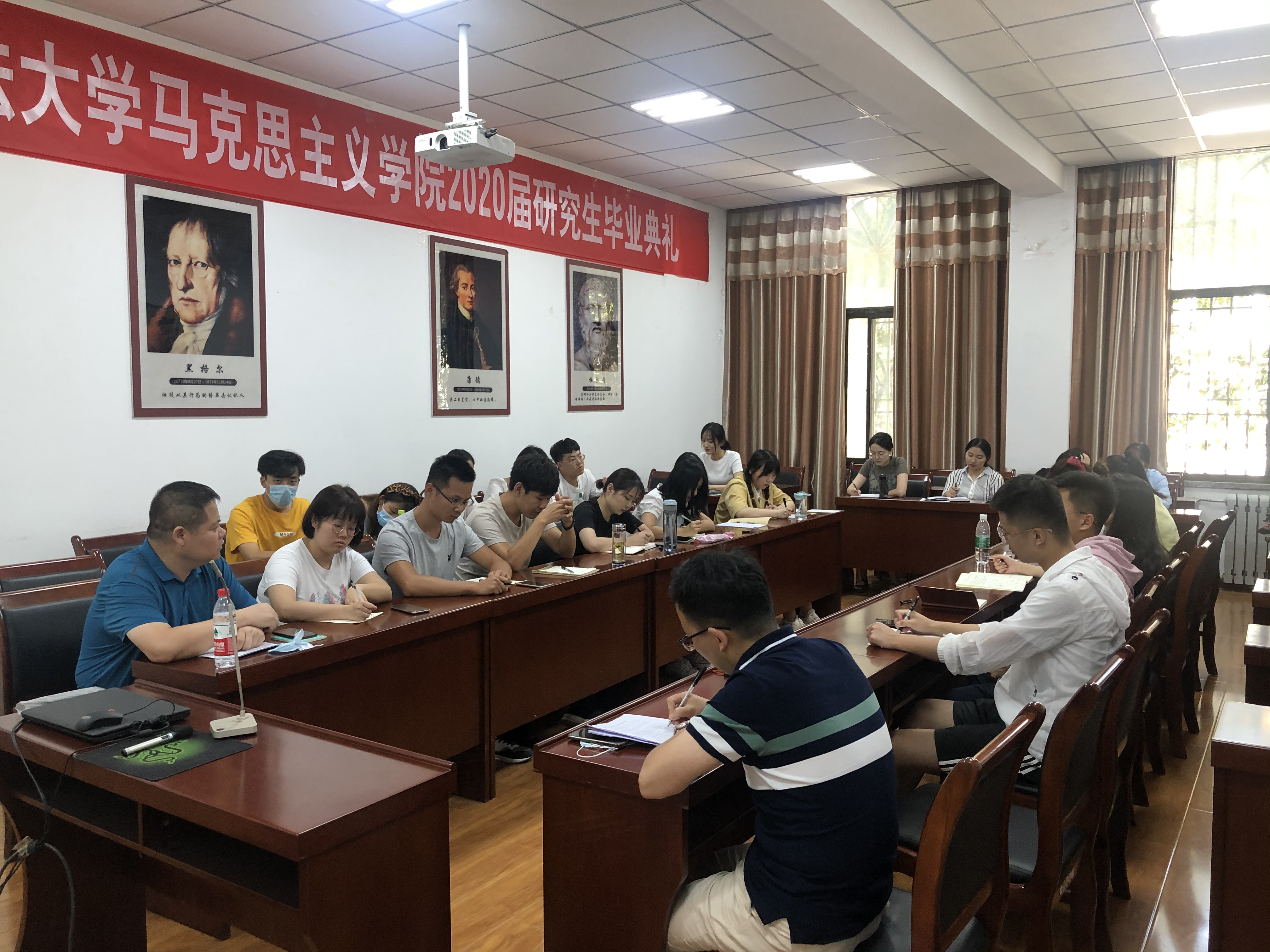 刘驰对学院近期研究生工作作了通报,并从马院学生培养目标、学科自觉和就业选择等方面强调了理论学习活动的重要性,要求同学们进一步端正了学习态度,从严要求自己,做一名合格的研究生。另外,还对2018级研究生毕业论文撰写和后期抽查工作提出了相关要求。