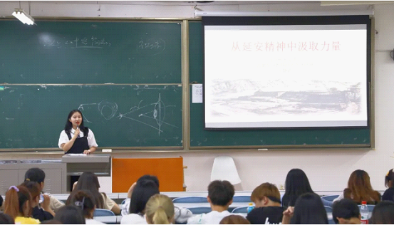 张婕妮以《从延安精神中汲取力量》为题,为大家介绍了延安这一红色革命圣地,并从延安精神的形成、主要内容以及重要价值出发呼吁青年学生要立足世情、国情、党情、民情的发展变化,继承革命传统,传承红色基因,做有本领、有理想、有担当的新时代青年。