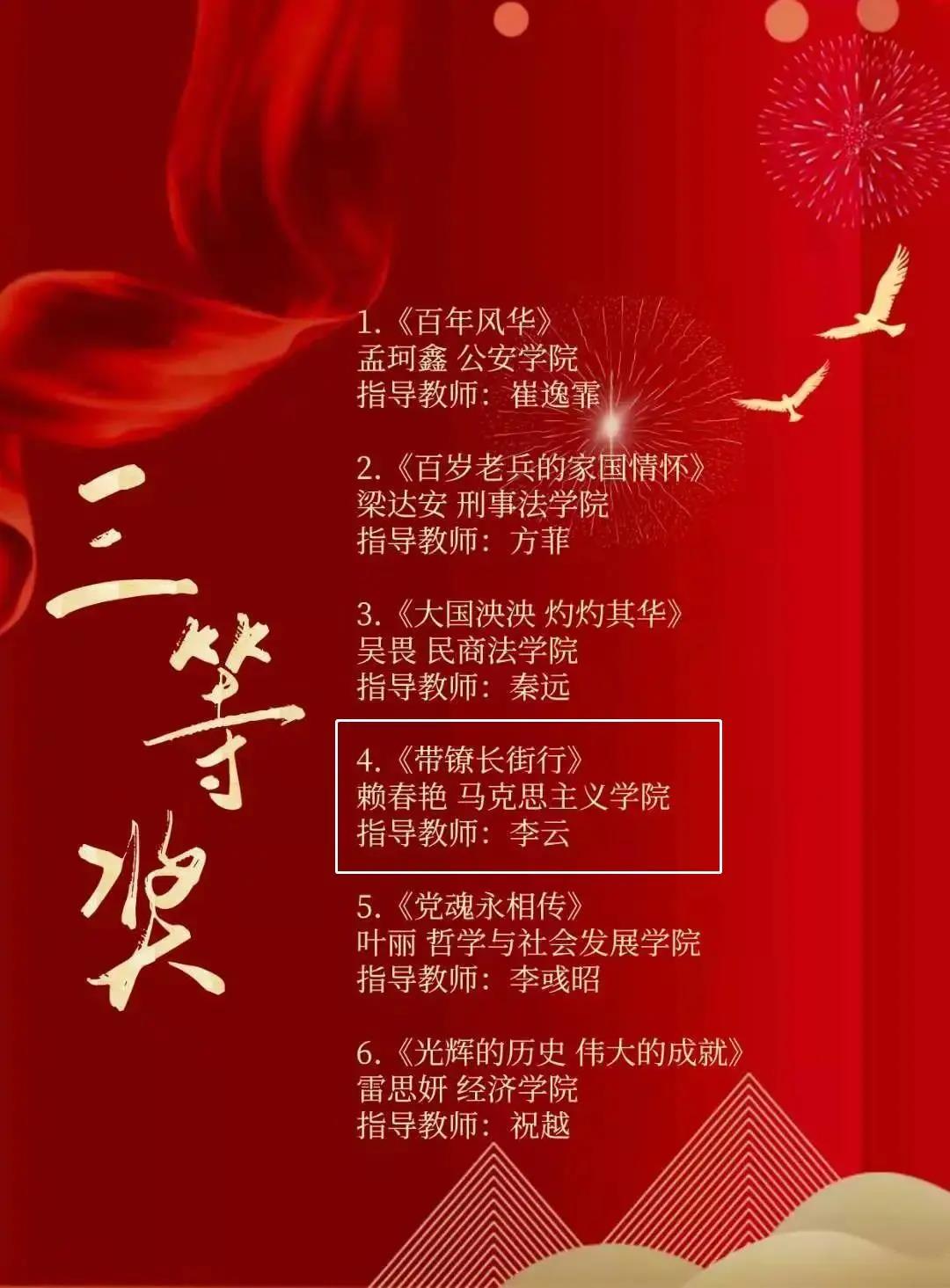 刘驰老师指导柏一兰同学作品《心向延安》荣获二等奖,李云老师指导赖春艳同学作品《带镣长街行》荣获三等奖。获奖党史故事作品扣人心弦,从不同角度描绘出一个个热血鲜活的党员形象,也体现了日本三级片