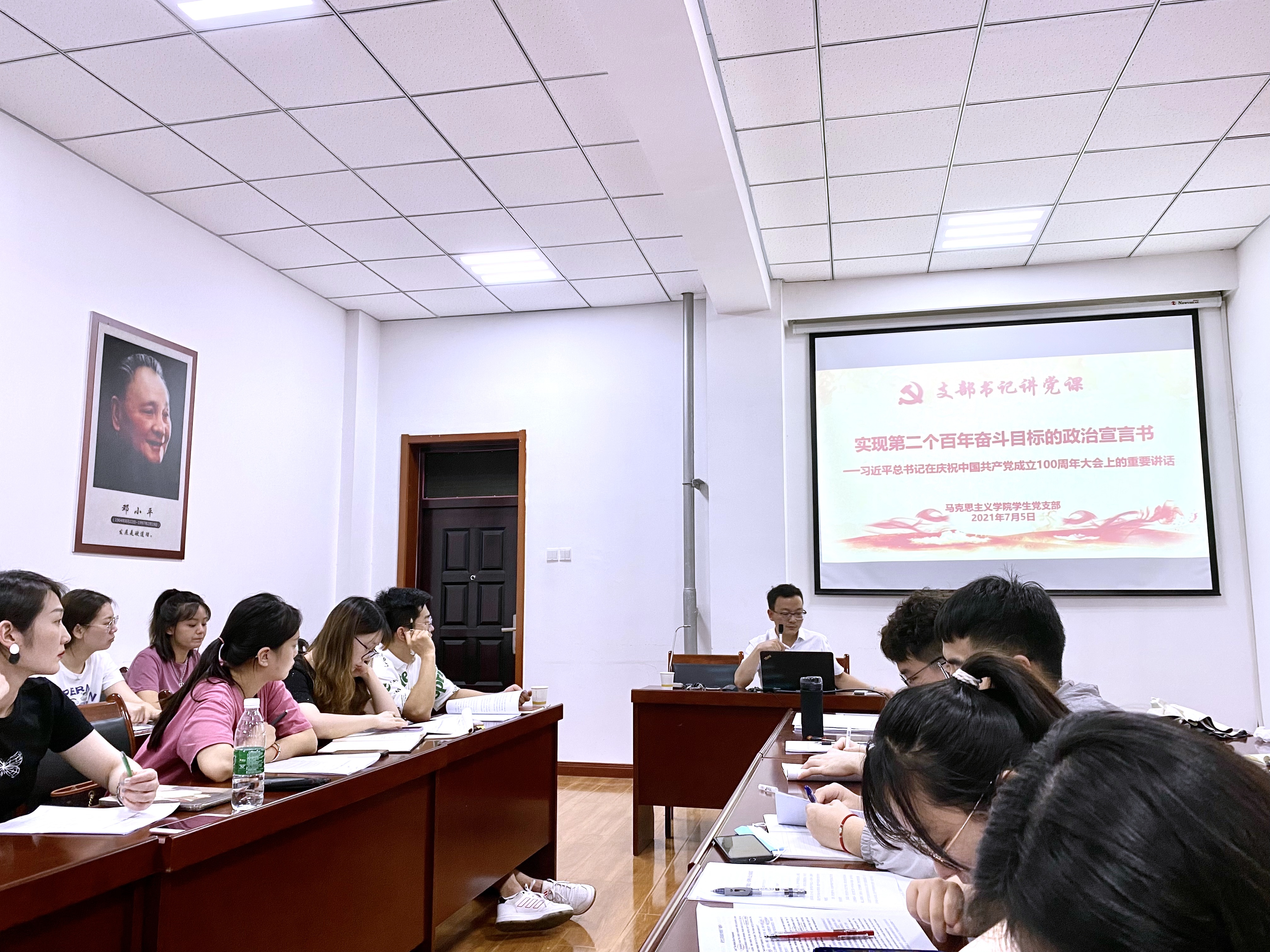 7月5日晚19时,日本三级片 学生党支部在雁塔校区文化与价值哲学研究院会议室召开了“支部书记讲党课——学习习近平总书记在庆祝中国共产党成立100周年大会上的重要讲话”专题学习会。学生党支部全体成员和部分入党积极分子参加了本次会议。会议由学院组织员、学生党支部书记徐鹏主持。
