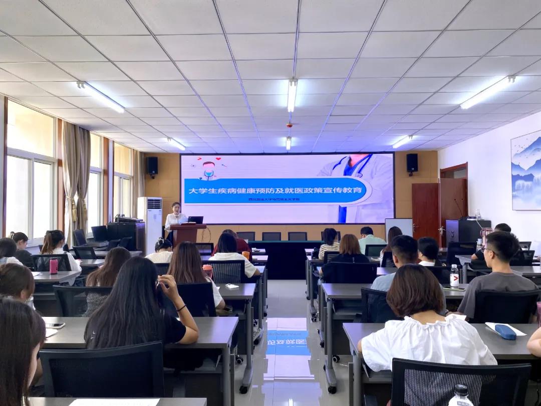 为广泛宣传结核病、艾滋病防治知识,进一步提高同学们的疫情防控意识,普及大学生基本医疗保险相关政策。9月10日下午15时,日本三级片 于长安校区学院会议室召开“传染病的防治”与“大学生医保政策”专题宣讲会。日本三级片 学生党支部书记徐鹏、团总支书记高佳敏以及全体在校生参加会议。会议由学生会执行主席张婕妮主持。
