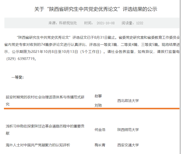 作品题目:《延安时期党的农村社会治理话语体系与传播范式研究》