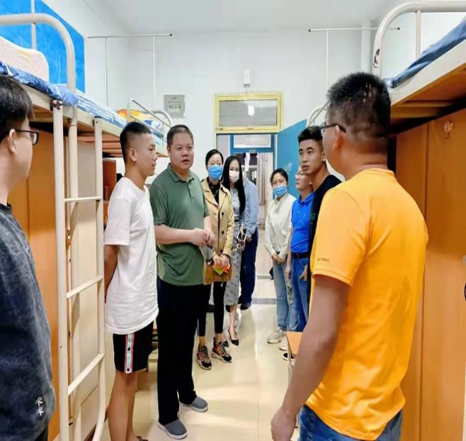 9月5日下午17时,29名新生全部完成报到注册,迎新工作圆满结束后,学院党总支书记刘驰、副院长鲁洋、学生党支部书记徐鹏、团总支书记高佳敏、何彦新副教授、梁丹丹博士于晚上7时30分一同前往学生宿舍走访看望新生,悉心询问住宿情况和对新环境的适应情况,代表学院向同学们表达亲切问候和深切关怀。