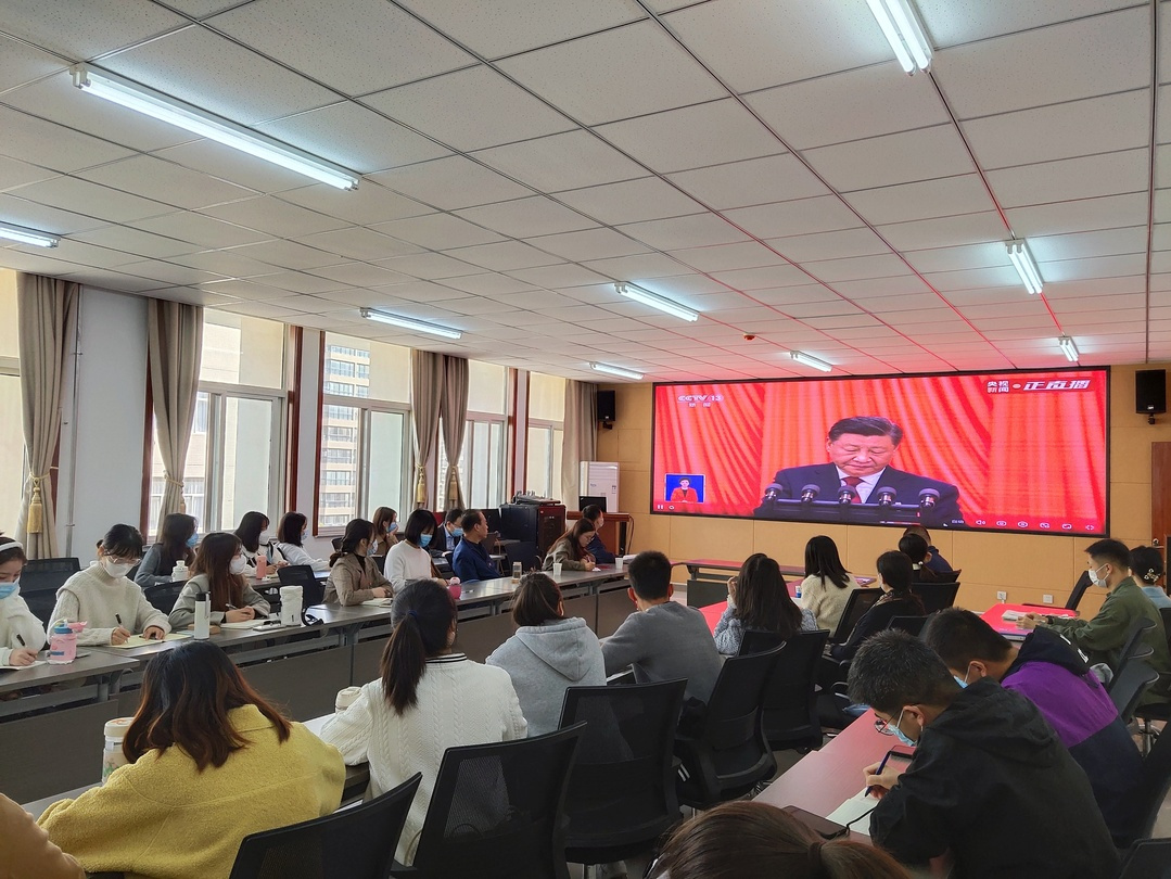 师生集中收看党的二十大开幕会网络直播,认真聆听习近平总书记报告,深刻理解和把握其精神实质和丰富内涵。