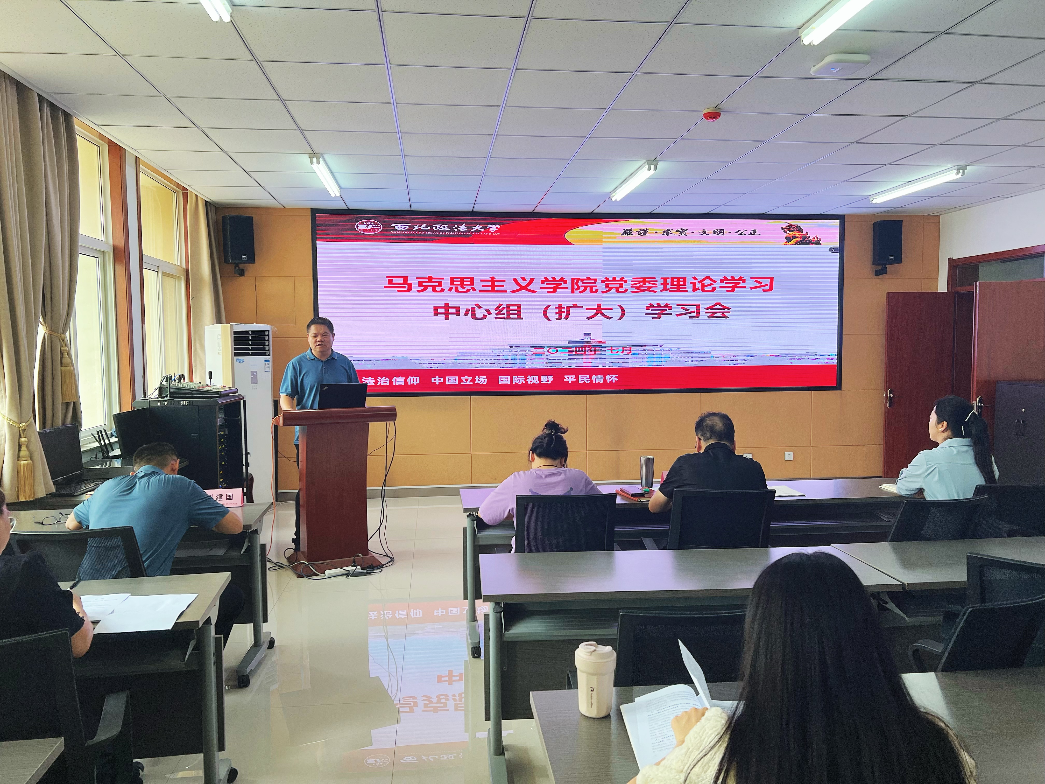7月24日下午,学院在会议室召开党委理论学习中心组(扩大)会议,专题学习党的二十届三中全会精神。学院领导班子成员、部分党支部书记、教研室主任、教师代表参加会议。会议由学院党委书记刘驰主持。