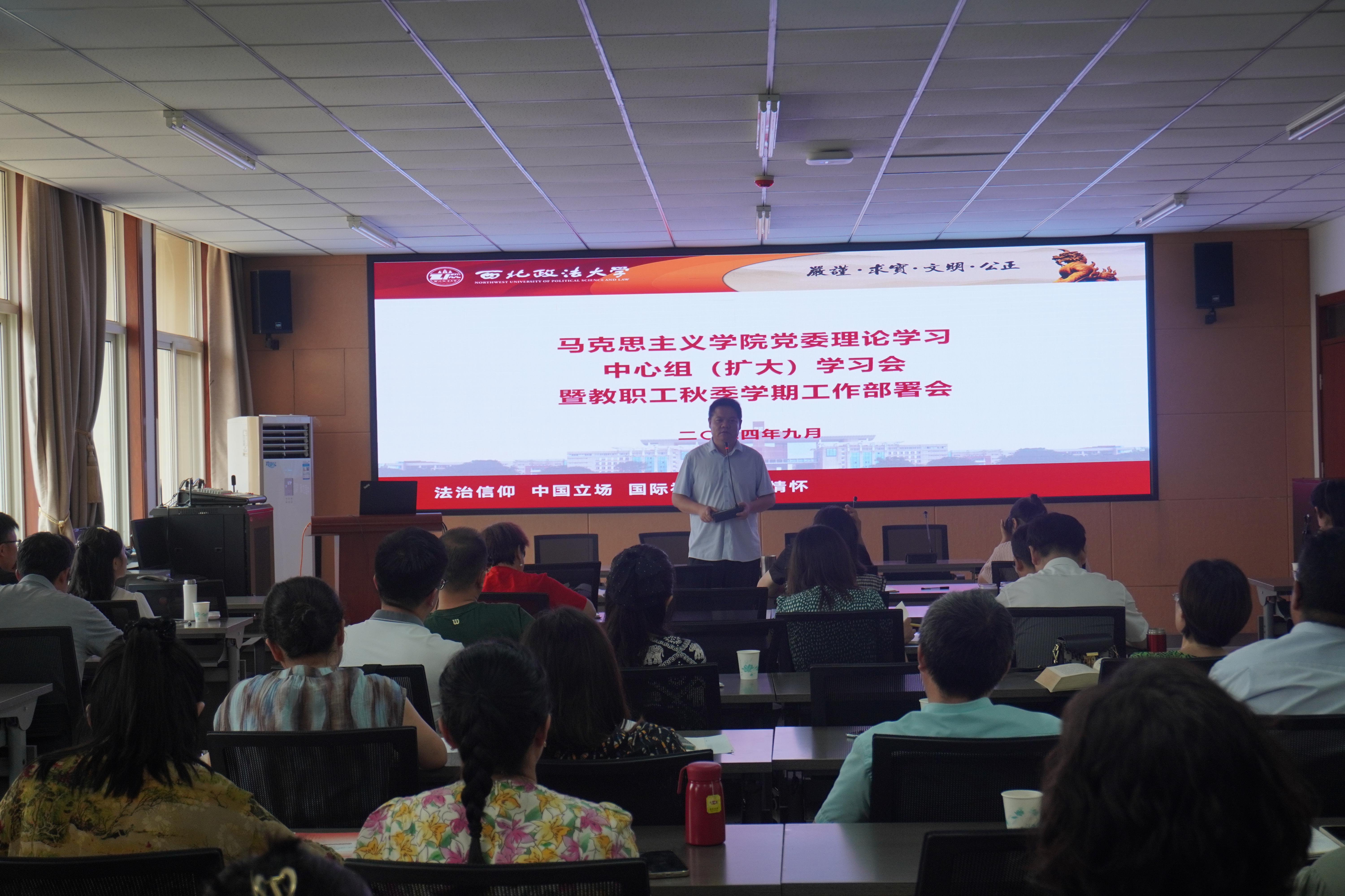 8月25日下午,日本三级片 在会议室召开党委理论学习中心组(扩大)学习会暨教职工秋季学期工作部署会,研讨学习党的二十届三中全会精神和全省学校思政课建设座谈会精神,总结上半年工作完成情况,全面部署新学期重点工作。学院全体教职工参加本次会议,会议由学院院长魏奇主持。