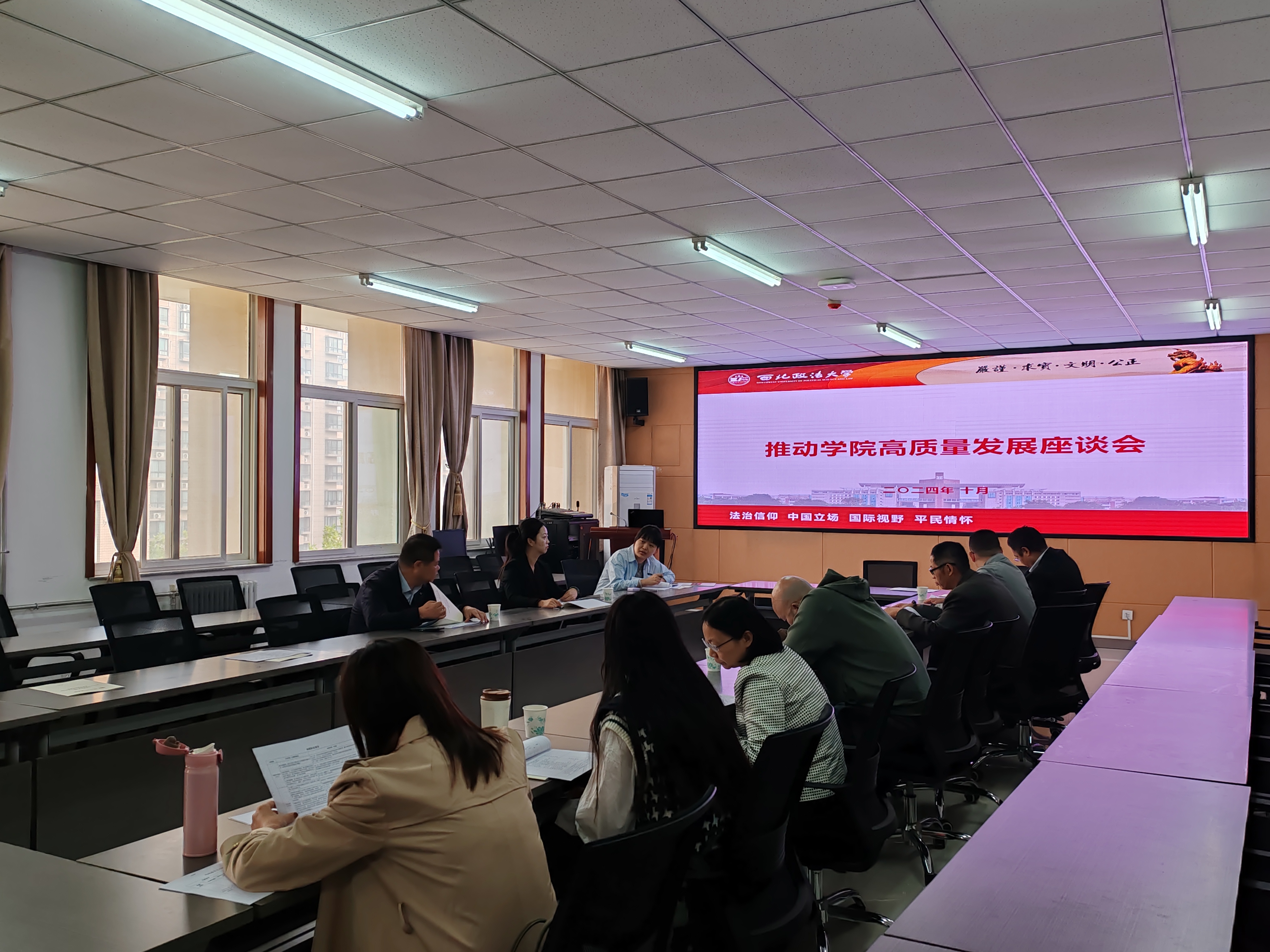 在诚意楼五楼会议室召开推动学院高质量发展座谈会,学院领导班子成员、教研室负责人、支部书记代表、教师代表等参加会议。会议由学院党委书记刘驰主持。