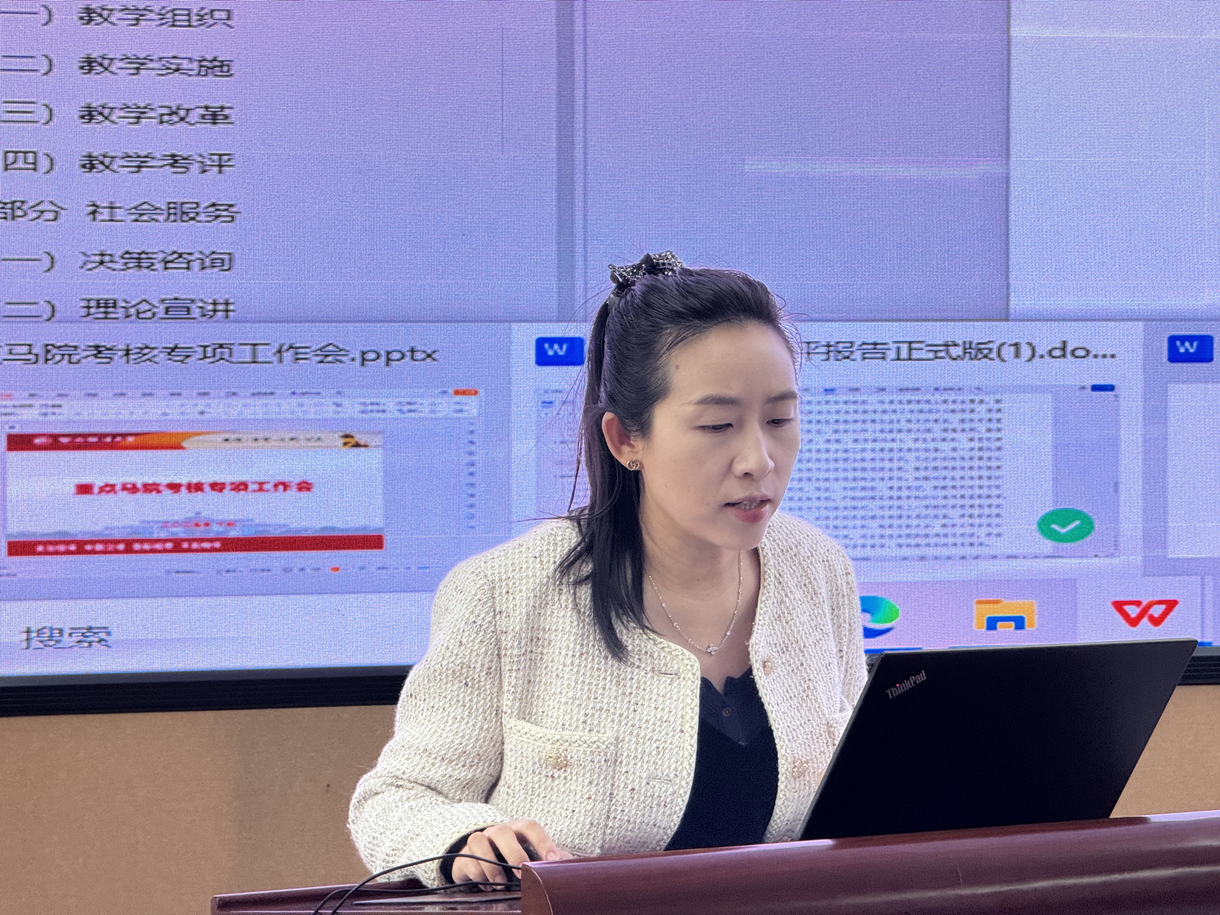 会上,大家从组织领导、人才队伍、教学管理等七个方面,全面梳理了近年来学院进行重点马院建设所取得的成绩及存在问题,并就学院下一步发展思路进行了研究讨论。