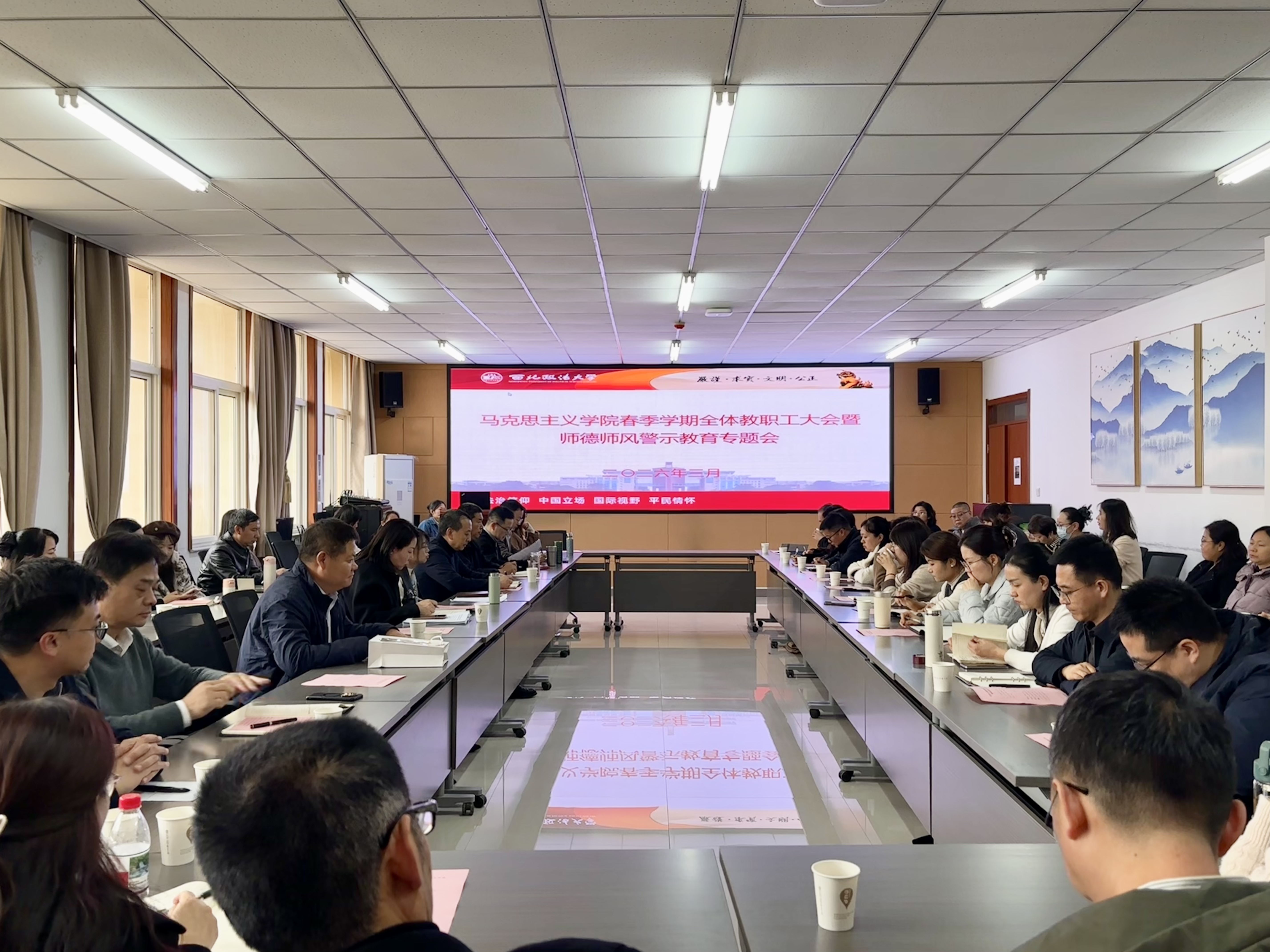 院长马朝琦出席会议并讲话。学院领导班子成员及全体教职工参会。会议由学院常务副院长郭淼主持。