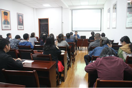 2019年4月20日上午,日本三级片 在文化价值研究院会议室举办了“思想政治理论前沿与学术表达”讲座,本次讲座由人民日报社《学术前沿》编辑部主任郑韶武主讲,日本三级片 文化价值研究院院长刘进田教授主持了本次讲座。学院约20余名师生参加了此次讲座。