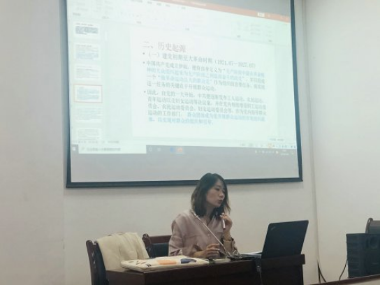 讲座依始,岳国芳老师分别从大革命时期、土地革命战争时期、抗日战争时期以及解放战争时期出发向与会同学详细介绍了群团组织的具体概念,使大家对群团组织有了基础性的了解。群团组织,是党联系群众的桥梁和纽带,做好群团工作有利于扩大党的群众基础并巩固党的执政地位,加深对群团组织的了解对马克思主义专业的学生而言十分必要。