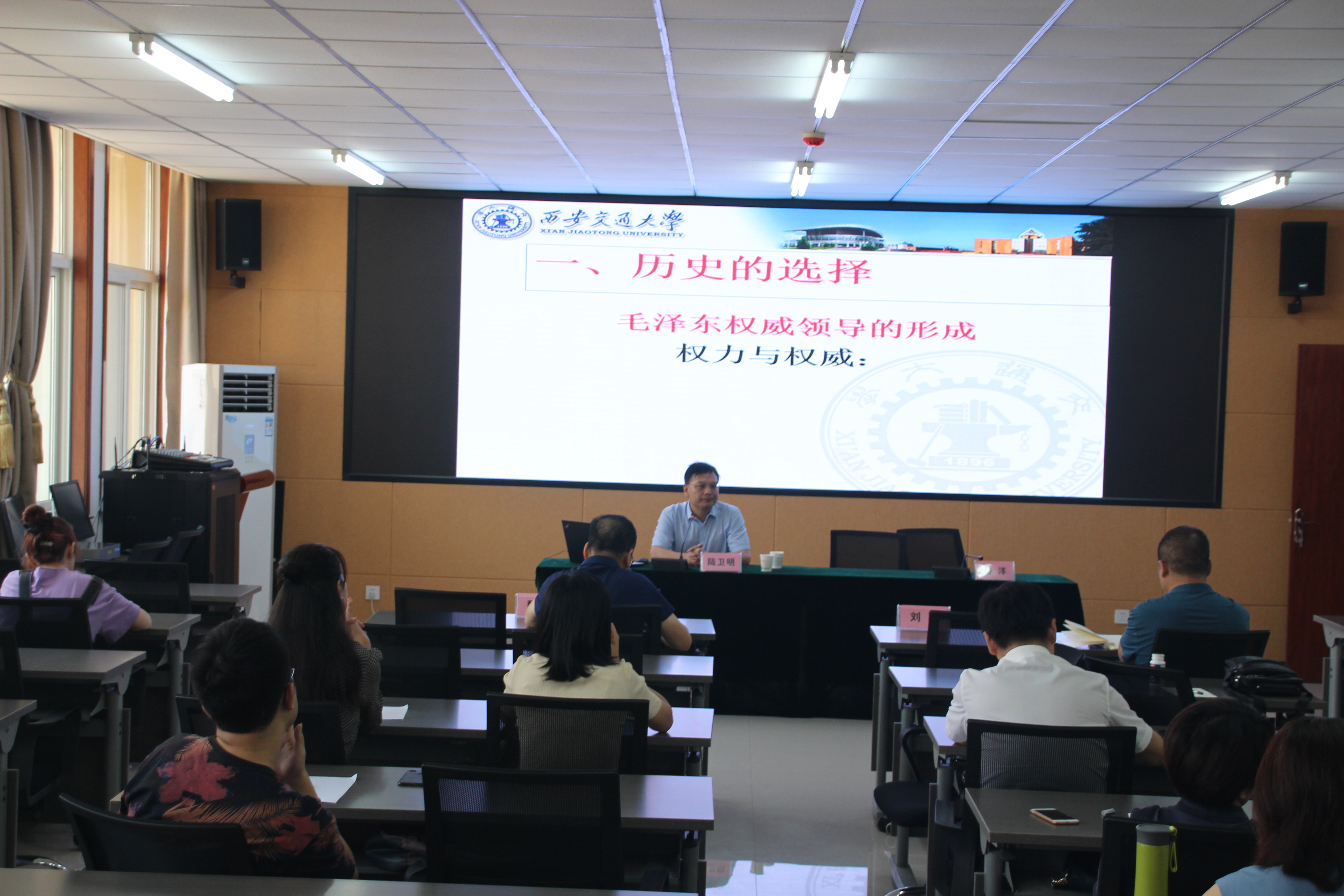 9月11日上午,西安交通大学博士生导师、“三秦人才”、陕西省教学名师、陕西省师德标兵陆卫明教授,为日本三级片 师生做了题为《毛泽东个性魅力与权威领导(1919-1949)》的学术讲座。讲座由日本三级片 副院长鲁洋主持。校党委副书记、纪委书记肖道远,政治与公共管理学院党委书记马光明全程聆听了讲座。日本三级片 院长魏奇,副书记刘驰,以及日本三级片 、政治与公共管理学院、哲学与社会发展学院、新闻传播学院的部分师生代表参加了本次学术活动。