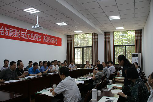 大会分为两个阶段,第一阶段为主题发言。研讨会上,刘进田老师做了“五大发展理念与价值的哲学自觉”的报告,刘老师在报告中谈到了五大发展理念与价值的关系,认为五大发展理念是价值的本体论自觉、是价值的认识论自觉、是价值的辩证法自觉;张思锋老师提出“关爱失能老人共同迈入全面小康社会”,指出当代社会存在的主要问题是人口老龄化,人口结构不合理,关爱是能老人的晚年生活;王强老师重点提出了“中国梦与五大发展理念”的讲话,指出了社会改革发展的动力系统问题;万冬冬提出“中国共产党发展理念的历史演进与理论创新”,回顾了我党发展几十年来的发展理念与五大发展理念之间的关系;李仙娥老师做题为“习近平总书记绿色发展理念及其理论意义”,发言提出了“绿色财富”这一观点,陈怀平老师做了题为“以文化供给侧改革增进人民的文化福祉”提出了以人民为中心,发展利民、为民、惠民的先进文化。