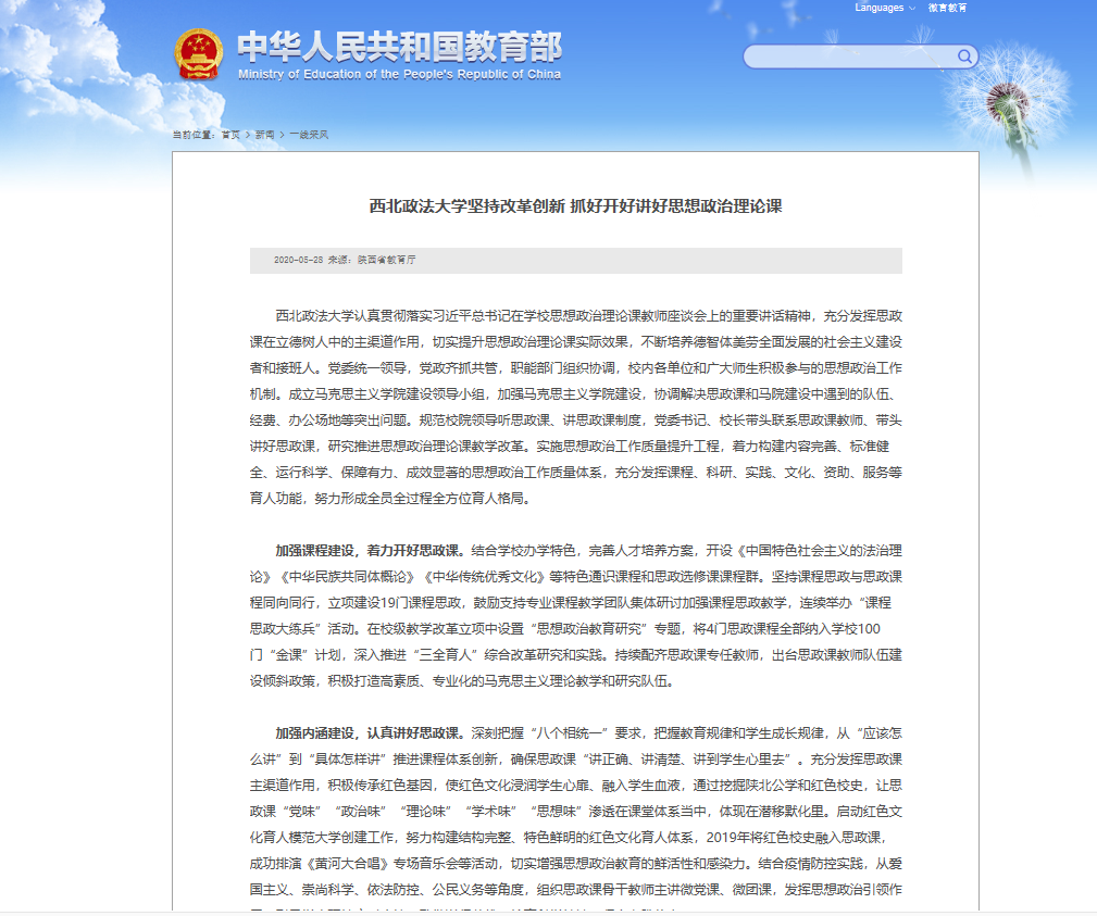 教育部网站报道日本三级片 思政课教学改革创新工作