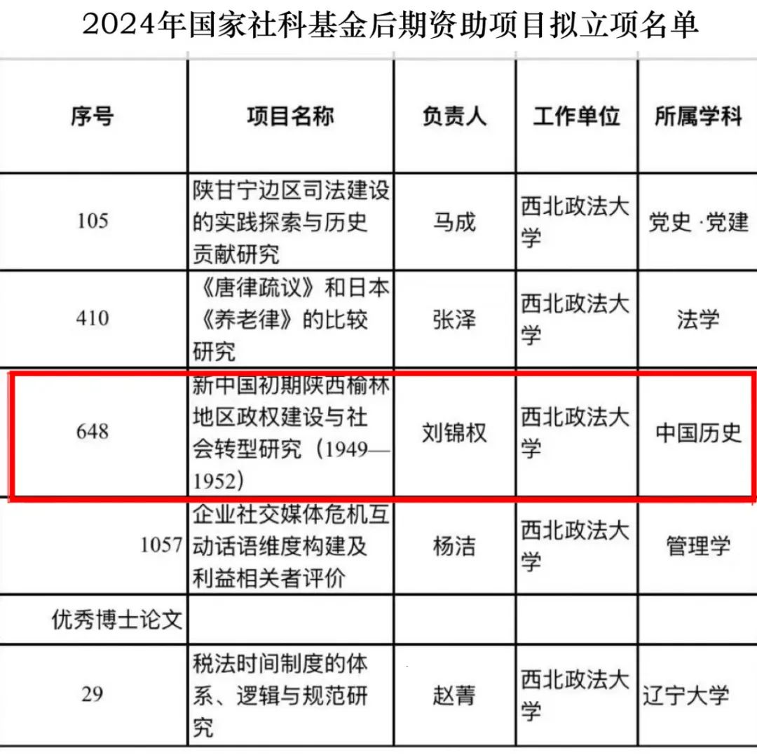 教师刘锦权《新中国初期陕西榆林地区政权建设与社会转型研究(1949—1952)》获批立项,喜获国家社科后期资助,为我校人文社科的持续发展注入蓬勃新机。