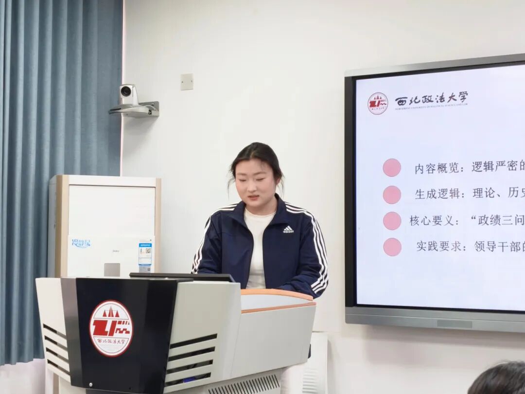 在交流环节中,2024级思想政治教育专业研究生张敏分享了对正确政绩观核心要义的认识;2025级思想政治教育专业研究生王欣睿则结合自身学习体会,分享了对正确政绩观理论内涵与实践要求的理解。