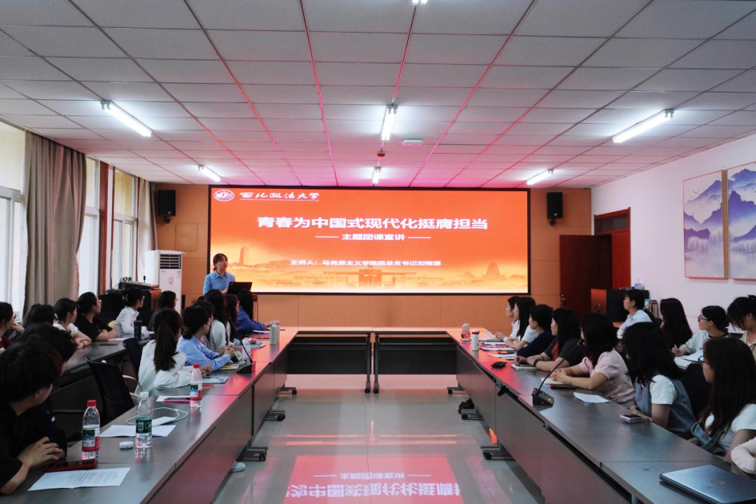 为深入学习贯彻习近平总书记关于青年工作的重要思想,加强日本三级片 团员青年的政治引领,5月9日下午,日本三级片 团总支于诚意楼五楼会议室召开“青春为中国式现代化挺膺担当”主题团课宣讲活动,此次活动由团总支书记刘栩源主讲,全体共青团员参加。