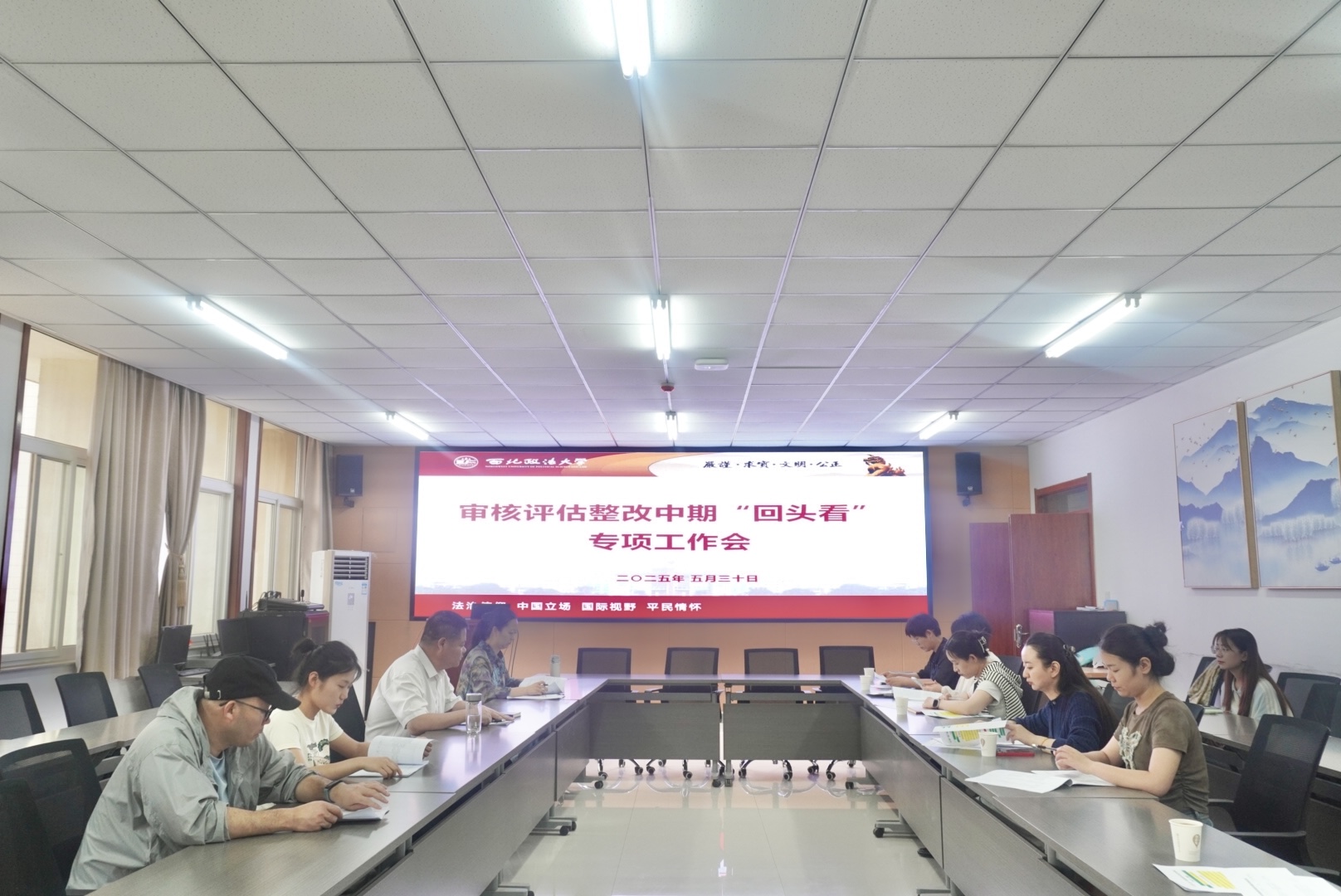 于诚意楼五楼会议室召开本科教育教学审核评估整改中期“回头看”专项工作会。学院党委书记刘驰以及工作组成员:汪小宁、宋伟、闫欢、赵海萍等参加了本次会议,本次会议由鲁洋主持。